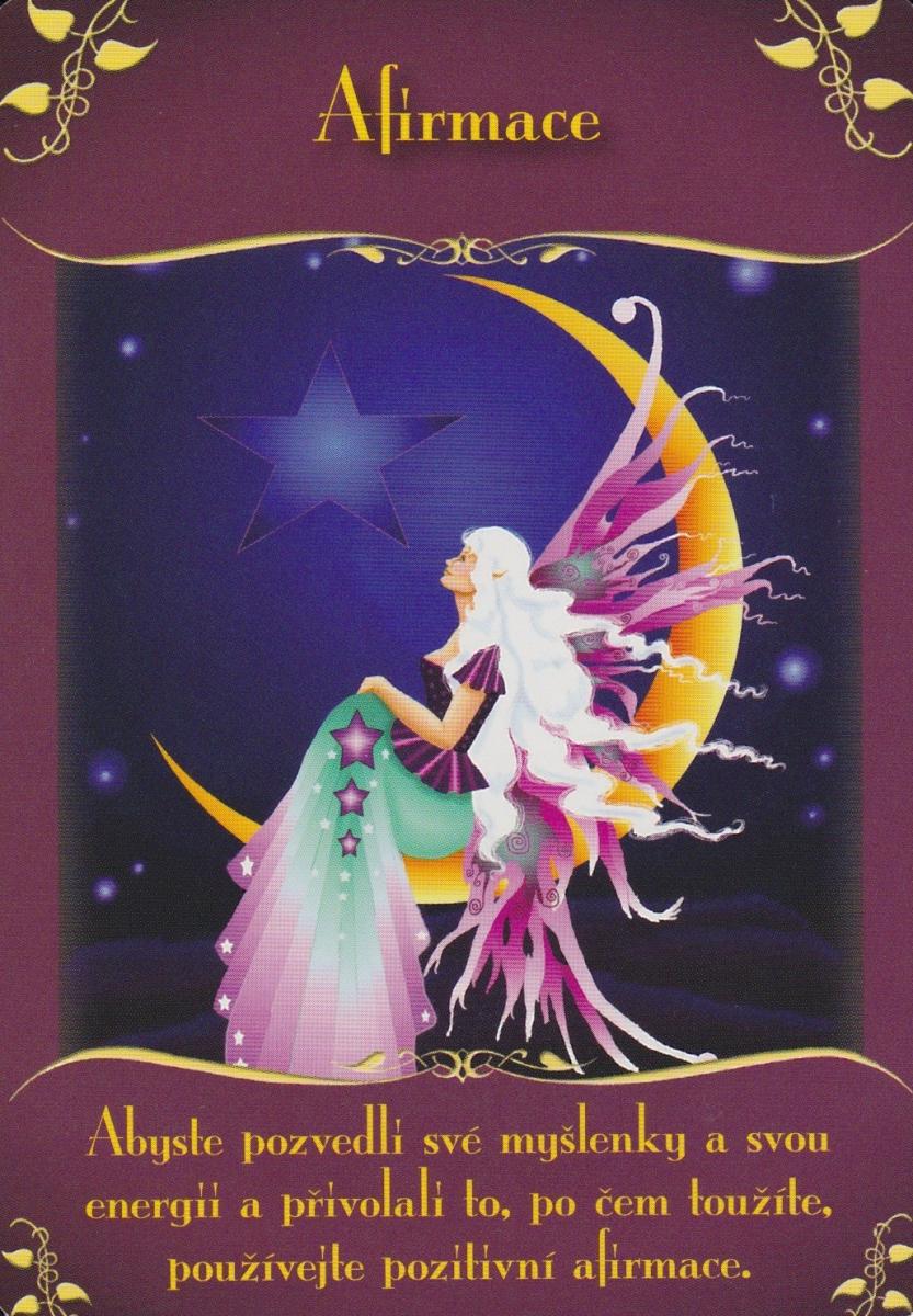 Vytáhli jste si tuto kartu, protože právě teď po něčem toužíte ( a vy víte, co to je). Abyste urychlili uskutečnění svého přání, je důležité pozdvihnout své myšlenky, pocity a přesvědčení na vyšší úroveň. Pozitivní afirmace mohou zvyšít vaši sebedůvěru a víru, což jsou dvě základní a kouzelné ingredience ke zhmotňování. Tato karta vás nabádá, abyste říkali nebo četli afirmace a abyste prohloubili svou víru, optimismus a výkonnost, s nimiž dosáhnete vytoužených výsledků.