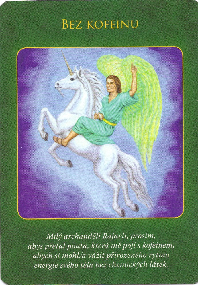 Milý archanděli Rafaeli, prosím, abys přeťal pouta, která mě pojí s kofeinem, abych si mohl/a vážit přirozeného rytmu energie svého těla bez chemických látek.