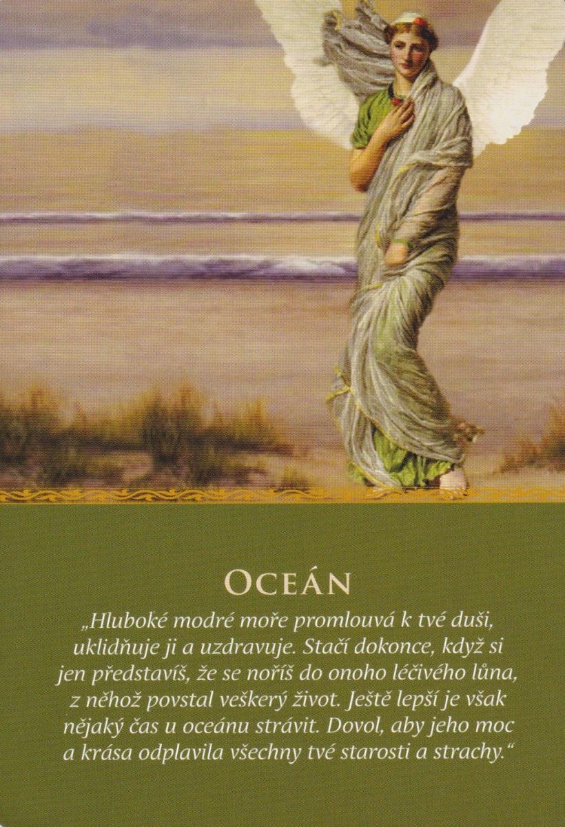 Tato karta vypovídá o vašem spojení s oceánem. Je také znamením, že potřebujete strávit více času u moře, ať už na dovolené nebo možná jako jeho noví sousedé. Andělé vám v tom rádi pomohou, pokud je o to požádáte. Mořský vzduch a voda působí nejen léčivě, ale jsou také zdrojem inspirace.