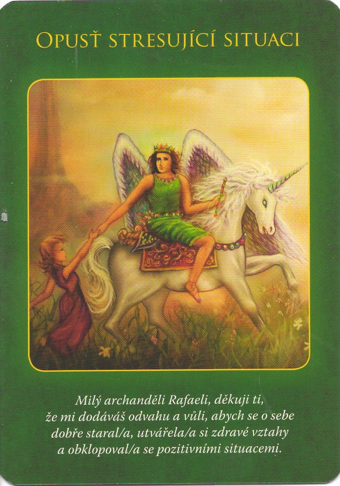 Milý archanděli Rafaeli, děkuji ti, že mi dodáváš odvahu a vůli, abych se o sebe dobře staral/a, utvářel/a si zdravé vztahy a obklopoval/a se pozitivními situacemi.