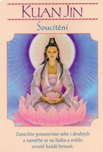 O Kuan Jin: Východní bohyně Kuan Jin vyslyší všechny modlitby ohledně čistoty, láskyplné péče a jemné síly. Kuan Jin je bodhisattva, což znamená, že je zvolená k povýšení do stavu Buddhovství. Přesto se zavázala zůstat poblíž Země, dokud všechna stvoření nebudou osvícena. Tato mladistvá a krásná bohyně nám pomáhá nalézt soucítění a milosrdenství k sobě samým i k ostatním. Je také ochránkyní dětí a žen, probouzí zájem o hudbu, hudební nadání, ale i jasnozřivost.