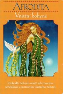 O Afroditě: Afrodita je řecká bohyně vášně a lásky, která je spojována s planetou Venuší. Afrodita znamená „zrozena z pěny", podle legendy totiž vzešla z vykastrovaných genitálií svého otce Urana, které byly odhozeny do moře. Afrodita tedy reprezentuje neostýchavou ženskou sexuální energii. Afrodita ženám pomáhá cítit se dobře ve svém těle a být zajedno se svou sexualitou. Pomáhá oběma pohlavím prožívat ve vztazích více vášně a dobře vyrovnávat mužskou a ženskou energii.