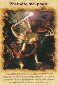 „Volám tě, archanděli Michaeli. Přetni prosím pouta strachu, která mě v minulosti blokovala nebo vysávala mou energii. Jsem připraven/a vyměnit svůj strach za vnitřní mír."