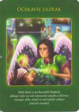 Tato karta vás ujišťuje, že působením modliteb, pozitivního myšlení a Božího zásahu nastává pozitivní změna zdravotního stavu. Vaše víra byla odměněna nečekaným a radostným způsobem. Teď je zapotřebí zůstat pozitivně naladěni a přenechat veškeré obavy Bohu a andělům. Oni vaše modlitby vyslyšeli, přestože se výsledek může lišit od vašich očekávání. V každém případě však zjistíte, že tato situace je pro vás velkým požehnáním. A především vám právě teď archanděl Rafael pomáhá nalézt klid, neboť ten je nejdůležitějším základním stavebním kamenem vašeho zdraví.