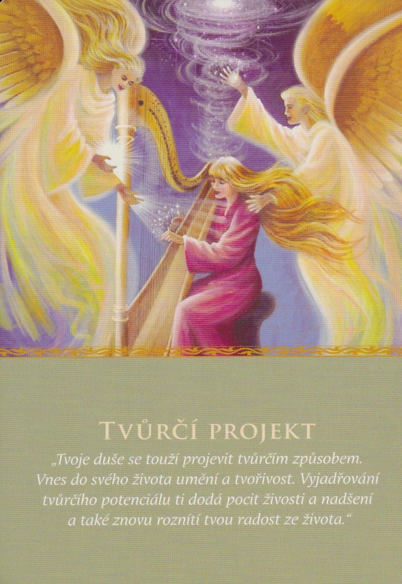 Tato karta naznačuje, že potřebujete více možností k tvůrčímu vyjádření. Andělé vás vybízejí, abyste je hledali jak u sebe doma a ve volném čase, ale i v práci. Pusťte se například do psaní, malujte, hrajte na hudební nástroje, věnujte se nějaké řemeslné tvorbě, pěstujte květiny nebo alespoň změnte interiér svého domova. Vůbec nezáleží na tom, zda bude vaše dílo prvotřídní. Záleží pouze na tom, že svému vnitřnímu umělci poskytnete radost z neomezeného projevu.