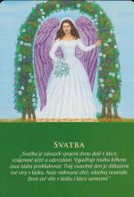 Tuto kartu jste obdrželi, protože s vaší otázkou souvisí téma svatby. Buď vás v blízké budoucnosti čeká svatba, anebo vás andělé vyzývají, abyste si vzpomněli na váš manželský slib a abyste v manželství již uzavřeném udržovali stále přítomnou něhu a lásku. Tato karta vyzařuje lásku a pozitivní energii, proto si nemusíte s tímto sdělením dělat starosti. Buďte otevření vůči lásce, romantice a novým možnostem a užijte si svůj svatební den.