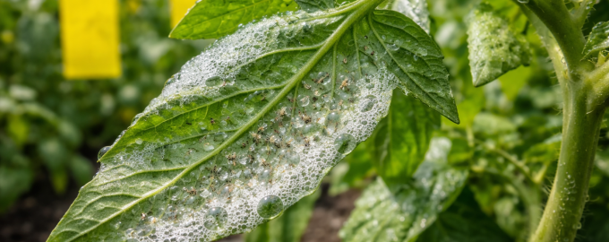 Mączlik może zamienić obiecujące sadzonki pomidorów w pozbawione życia krzaki w ciągu zaledwie tygodnia. Jeśli zauważysz małe białe muszki startujące po