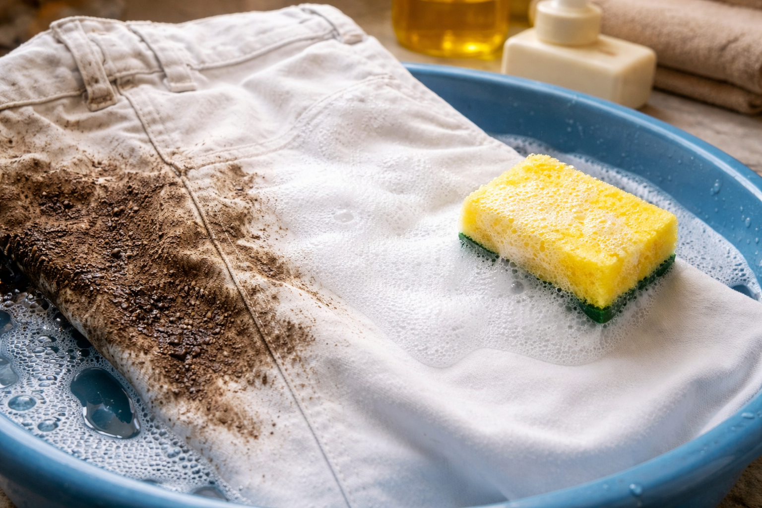Delikatnie masuj tkaninę palcami, aż pojawi się gęsta piana.
