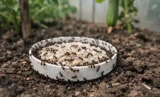 Ściółkowanie krzewu materią organiczną w celu zatrzymania wilgoci.