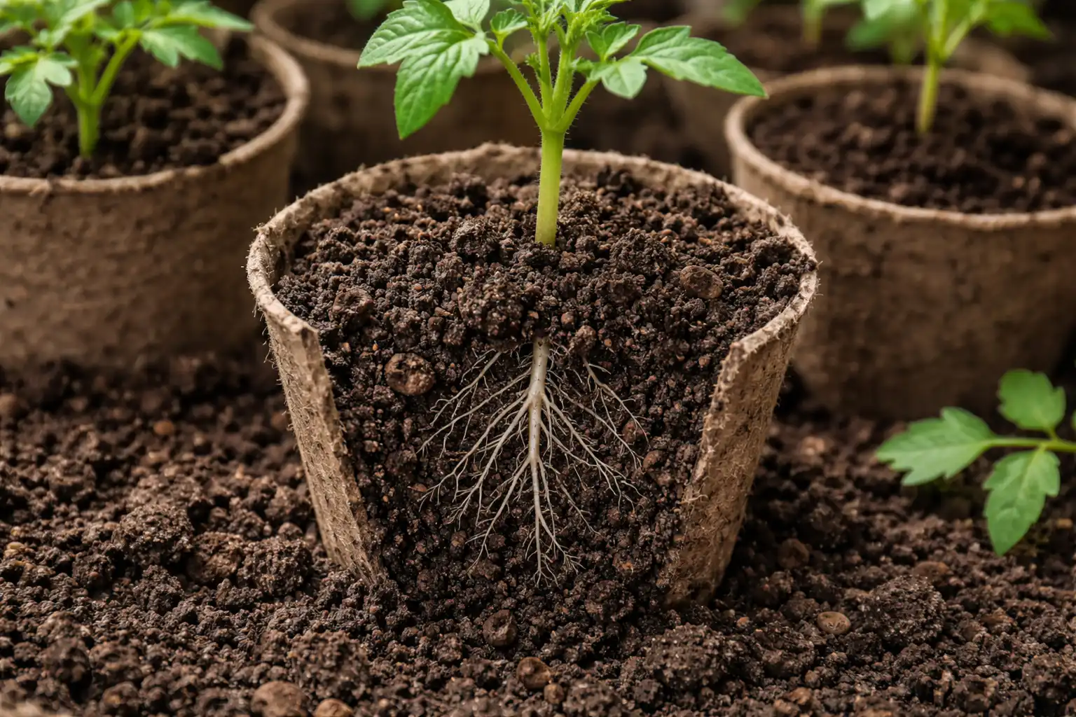 Dla prawidłowego rozwoju system korzeniowy wymaga stałej stymulacji. W puszystym torfie kupionym w sklepie korzenie rosną zbyt szybko i pozostają cienkie i kruche. Kiedy rośliny te są wystawione na prawdziwe warunki zewnętrzne, są bardzo zestresowane.