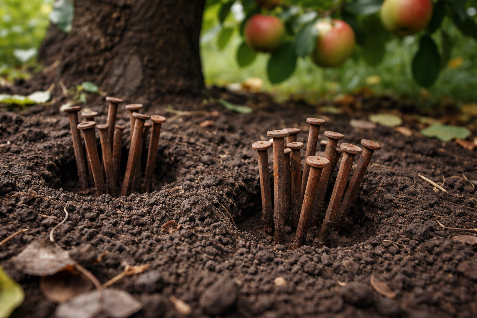 Sekretny niuans: wstępnie namocz stary metal w słabym roztworze kwasu cytrynowego na kilka godzin, co natychmiast aktywuje uwalnianie dwuwartościowego żelaza bezpośrednio w strefie korzeniowej.