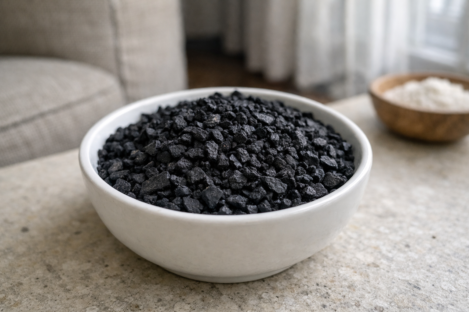 Umieść małe miseczki z pokruszonym węglem aktywnym w rogach.