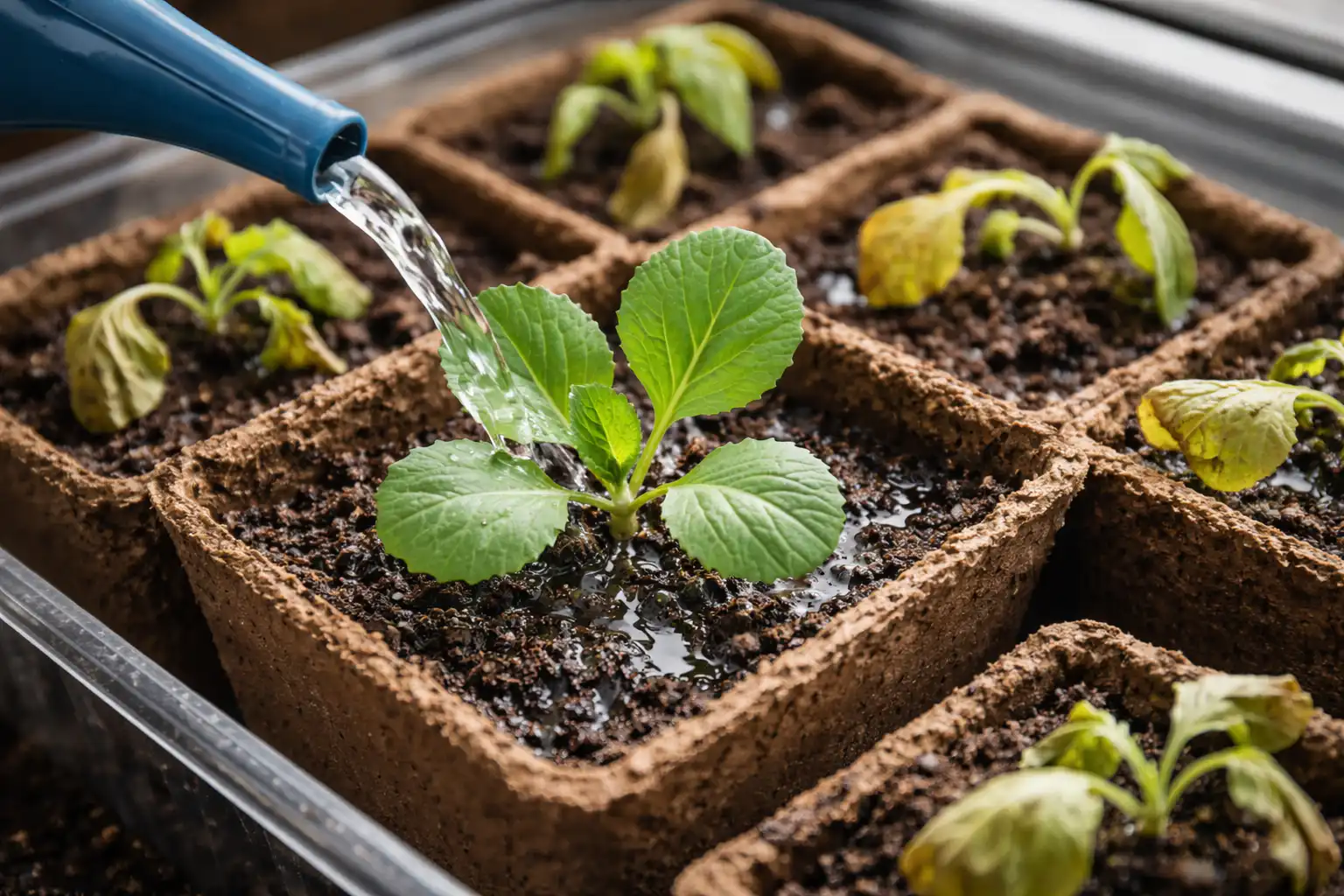 Sekretny niuans z praktyki: zawsze podlewaj sadzonki wyłącznie przez tacę, co zachęca korzenie do rozciągania się w dół w poszukiwaniu pożywienia i zapobiega gniciu delikatnej łodygi na powierzchni gleby.