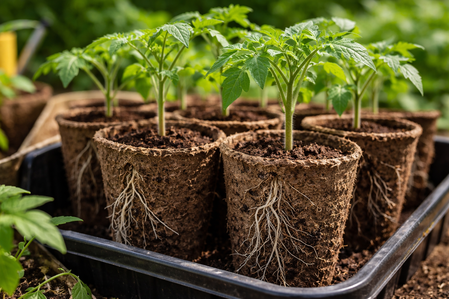 Tradycyjnie sadzonki pomidorów uprawia się w plastikowych kasetach, ale metoda ta ma wiele ukrytych niebezpieczeństw. Gładkie, hermetyczne ścianki zmuszają korzenie do spiralnego zwijania się, tworząc ciasną plątaninę. Kiedy nadejdzie czas sadzenia, system korzeniowy jest nieuchronnie traumatyzowany. Prasowana materia organiczna rozwiązuje ten problem na podstawowym poziomie.