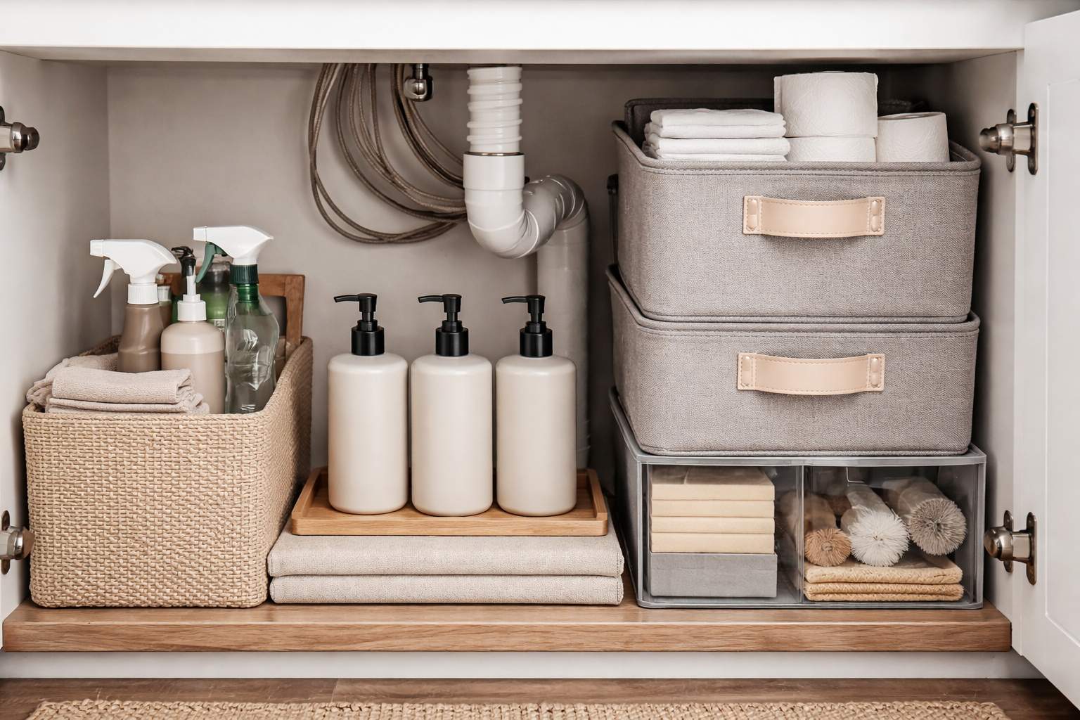 Małe przedmioty i kosmetyki odkładaj do zamkniętych, nieprzezroczystych organizerów.