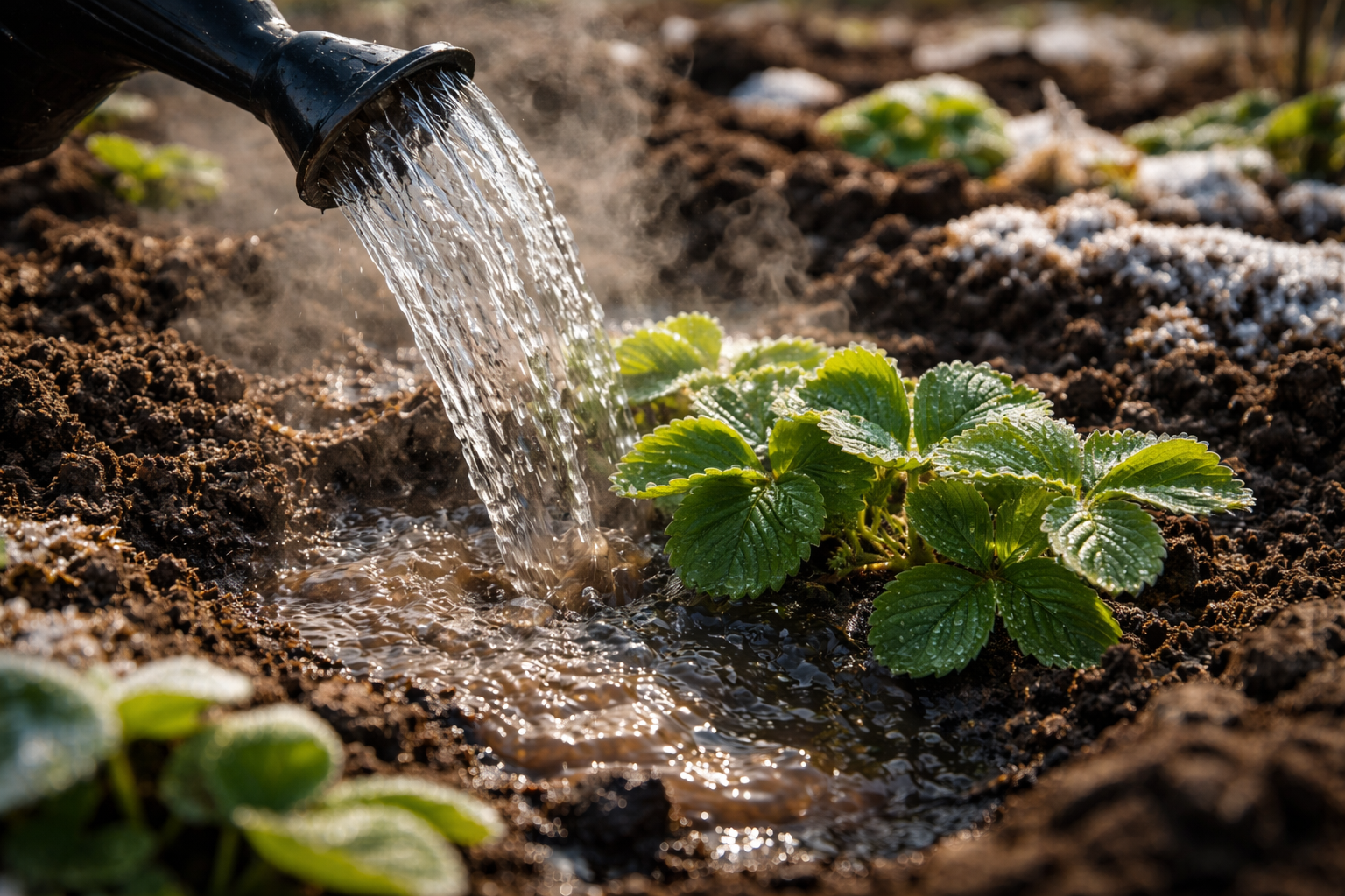 Główny sekret polega na stworzeniu efektu poduszki termicznej. Podgrzana wilgoć przenika do głębokich warstw gleby, topiąc kryształki lodu w mikroporach i zwiększając ogólną temperaturę podłoża o kilka stopni.