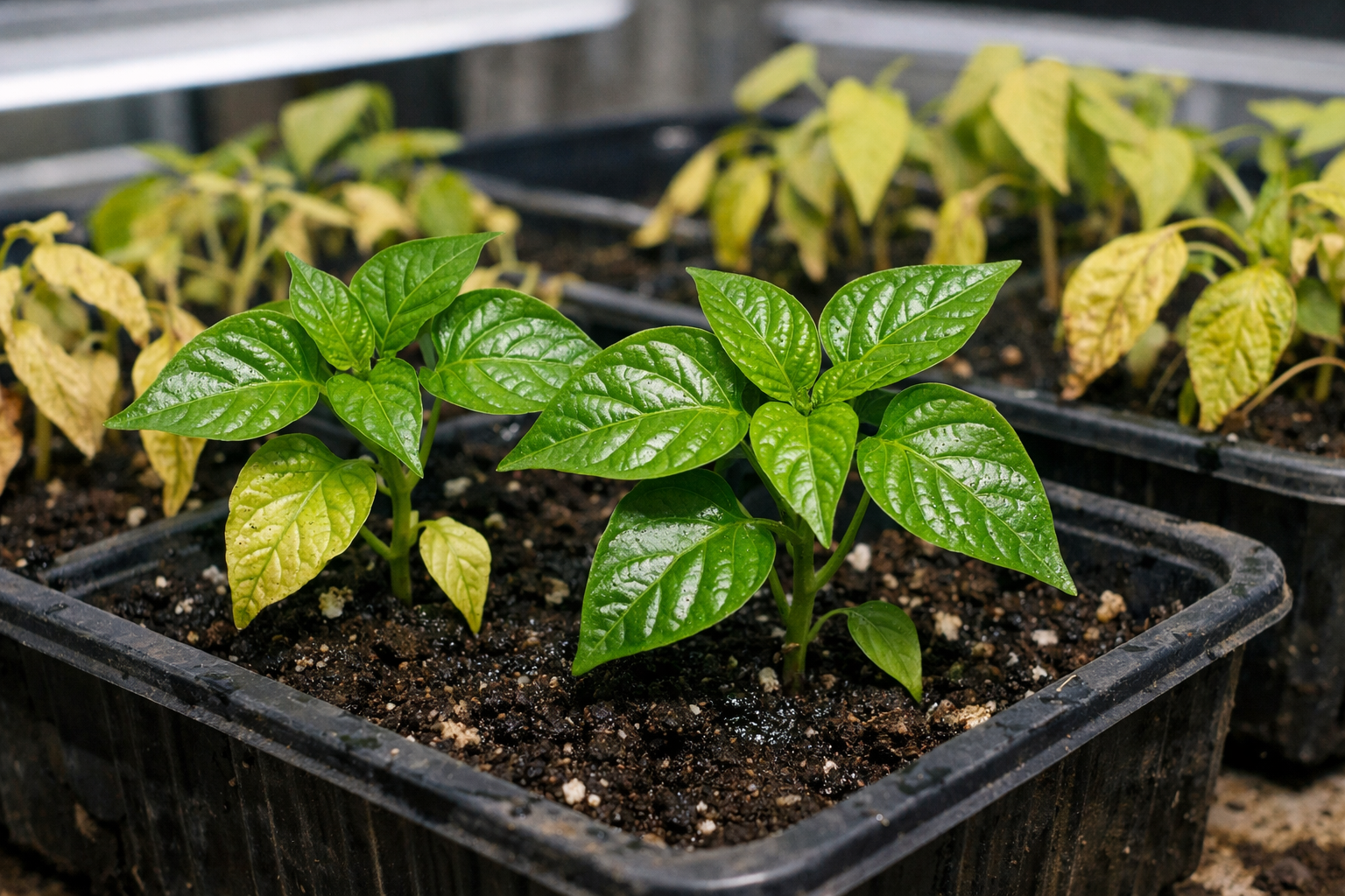 Pierwszą zasadą reanimacji bladych siewek jest ustabilizowanie mikroklimatu. Wielu ogrodników popełnia błąd, próbując „nakarmić” żółknącą paprykę nawozami azotowymi. Bez światła system korzeniowy po prostu nie jest w stanie wchłonąć tych pierwiastków, co prowadzi do zasolenia gleby.