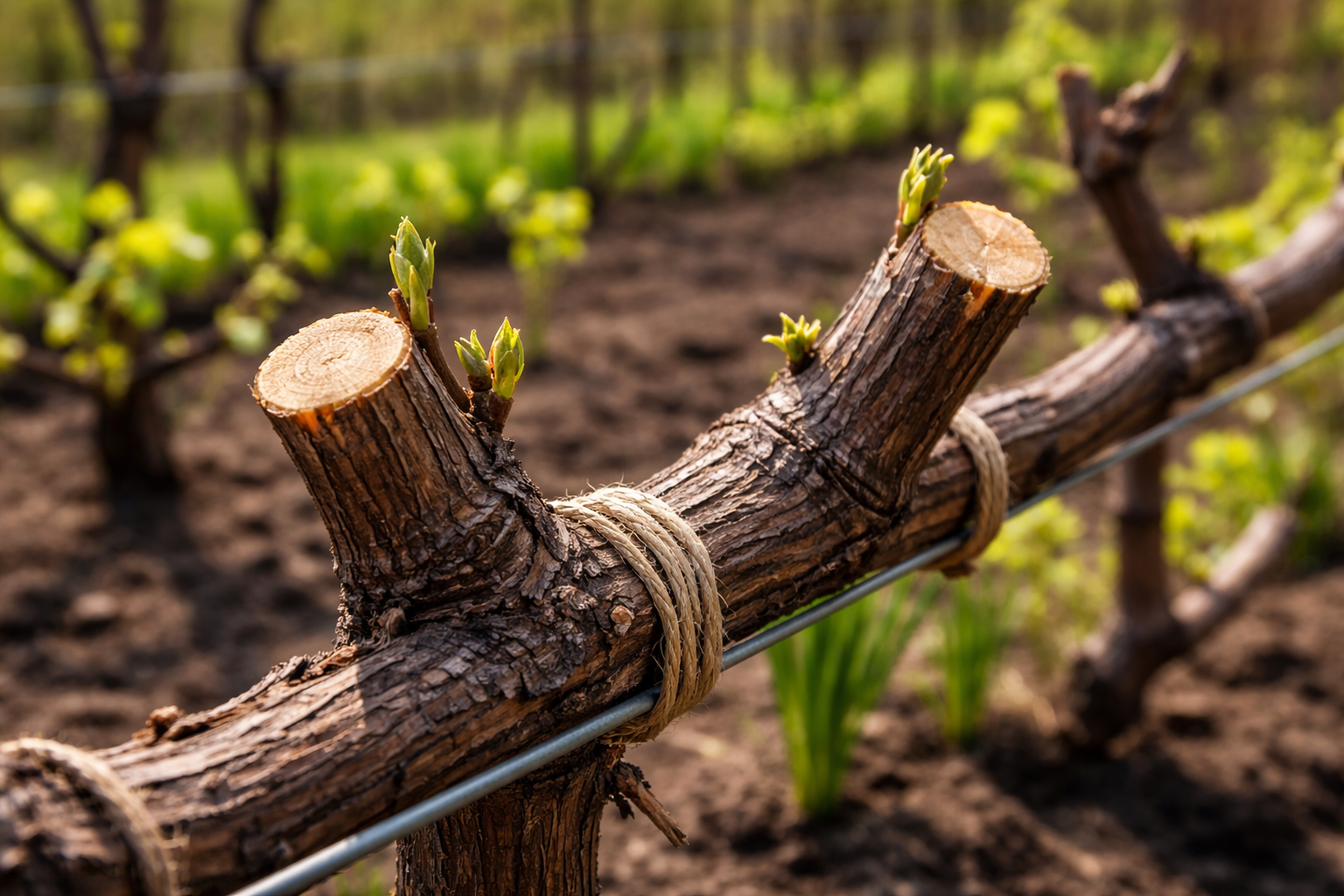 Ważna wskazówka: przycinaj winorośl ściśle na międzywęźlach, pozostawiając niewielki ochronny kikut nad górnym pąkiem, aby zapobiec przenikaniu patogenów do ważnych tkanek winorośli.