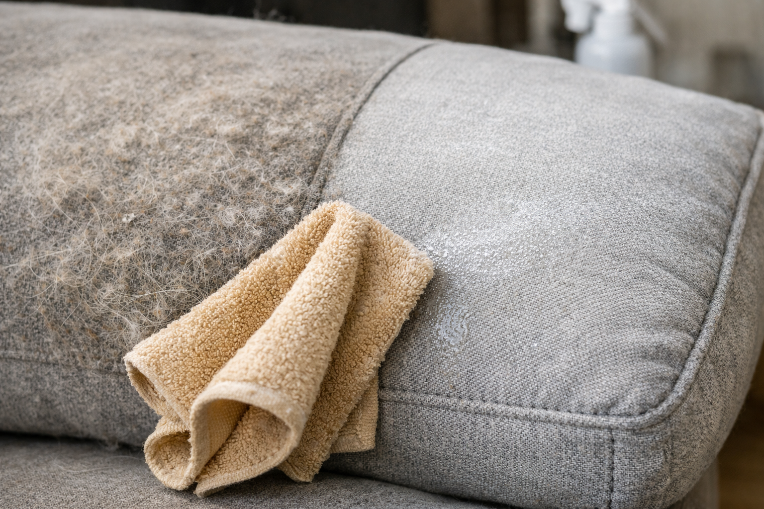 Ważna wskazówka: przed gruntownym czyszczeniem należy przetestować ten domowy spray na niepozornym obszarze tapicerki, aby upewnić się, że meble są odporne na barwniki.