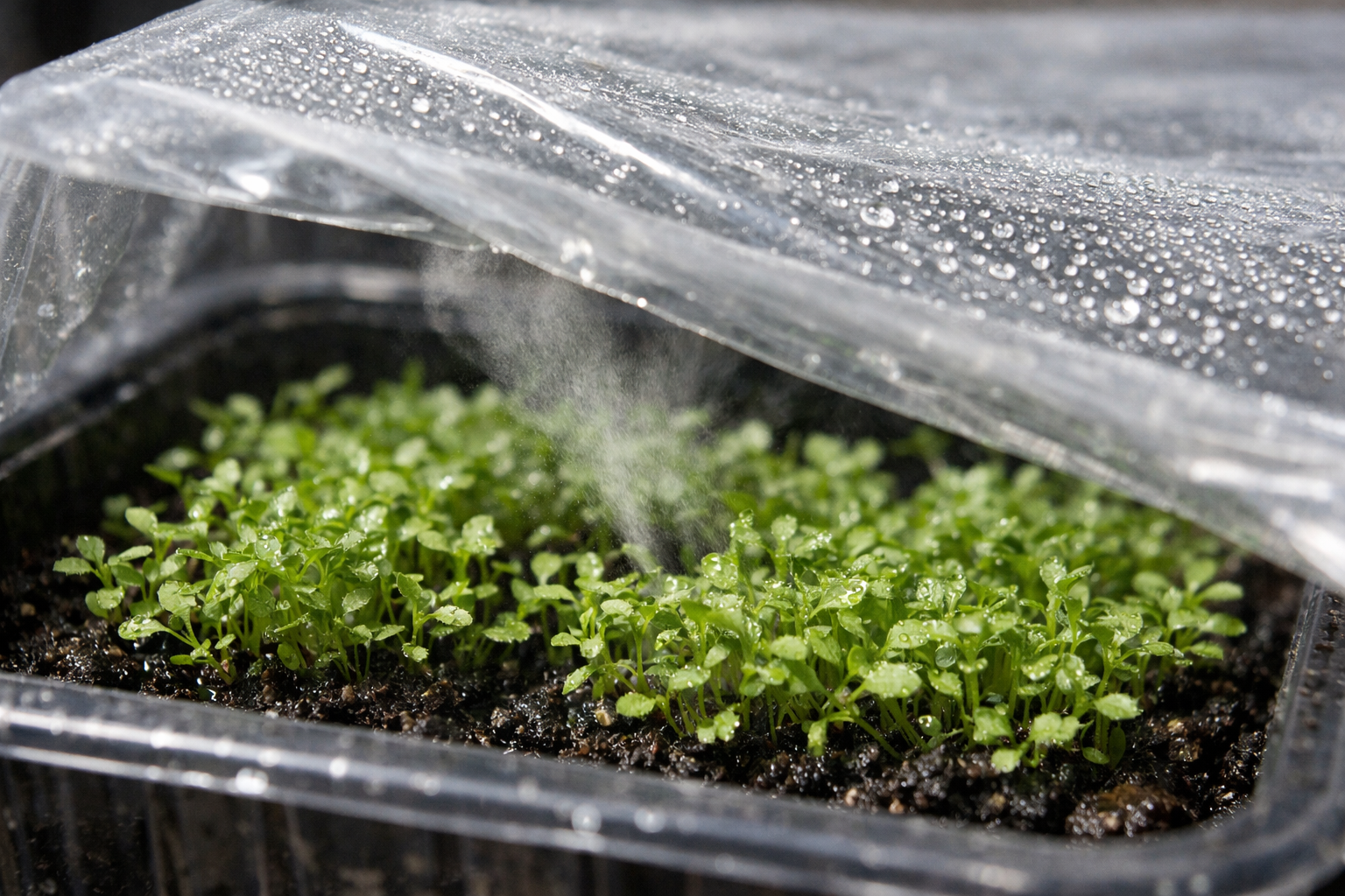 Przenieś pojemnik z sadzonkami w jasne, ale chłodne miejsce, z dala od szyb okiennych.