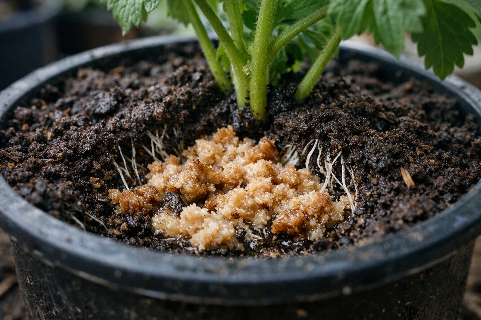 Chleb jest doskonałym źródłem naturalnego drożdży, węglowodany и aminokwasy. Po spożyciu do gleby składniki te aktywują korzystne mikrofloręktóra przetwarza materię organiczną i sprawia, że składniki odżywcze są bardziej dostępne dla korzeni. Tworzy to efekt „ciepłego łóżka” bezpośrednio w doniczce z sadzonką, co jest szczególnie ważne w chłodnym okresie wiosennym.
