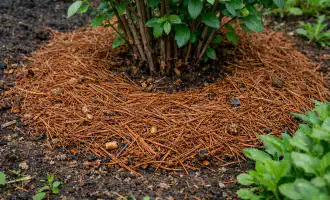 Wlej warstwę ściółka organiczna o grubości od pięciu do siedmiu centymetrów.