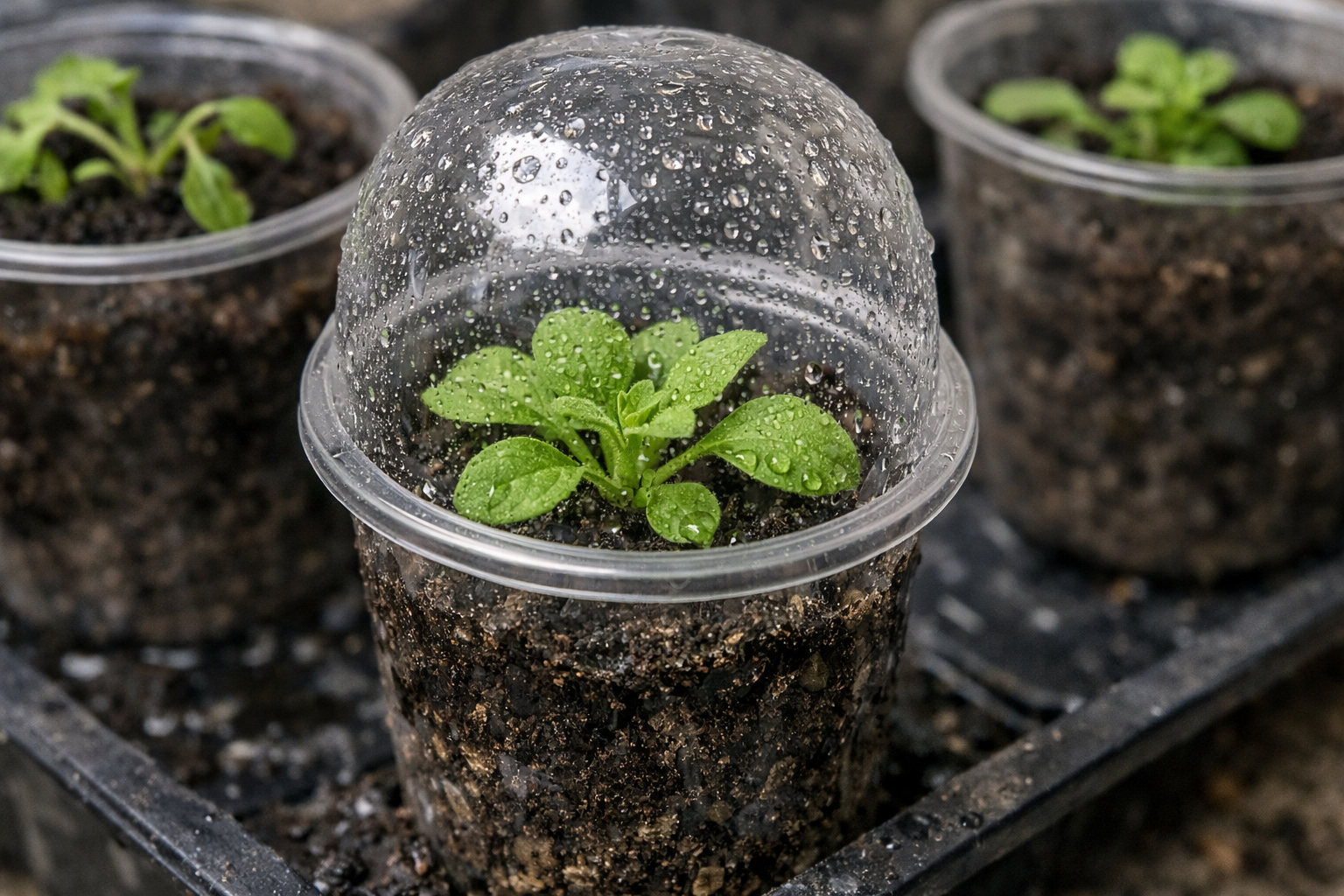 Przykryj każdą sadzonkę przezroczystym plastikowym kapturkiem lub folią.