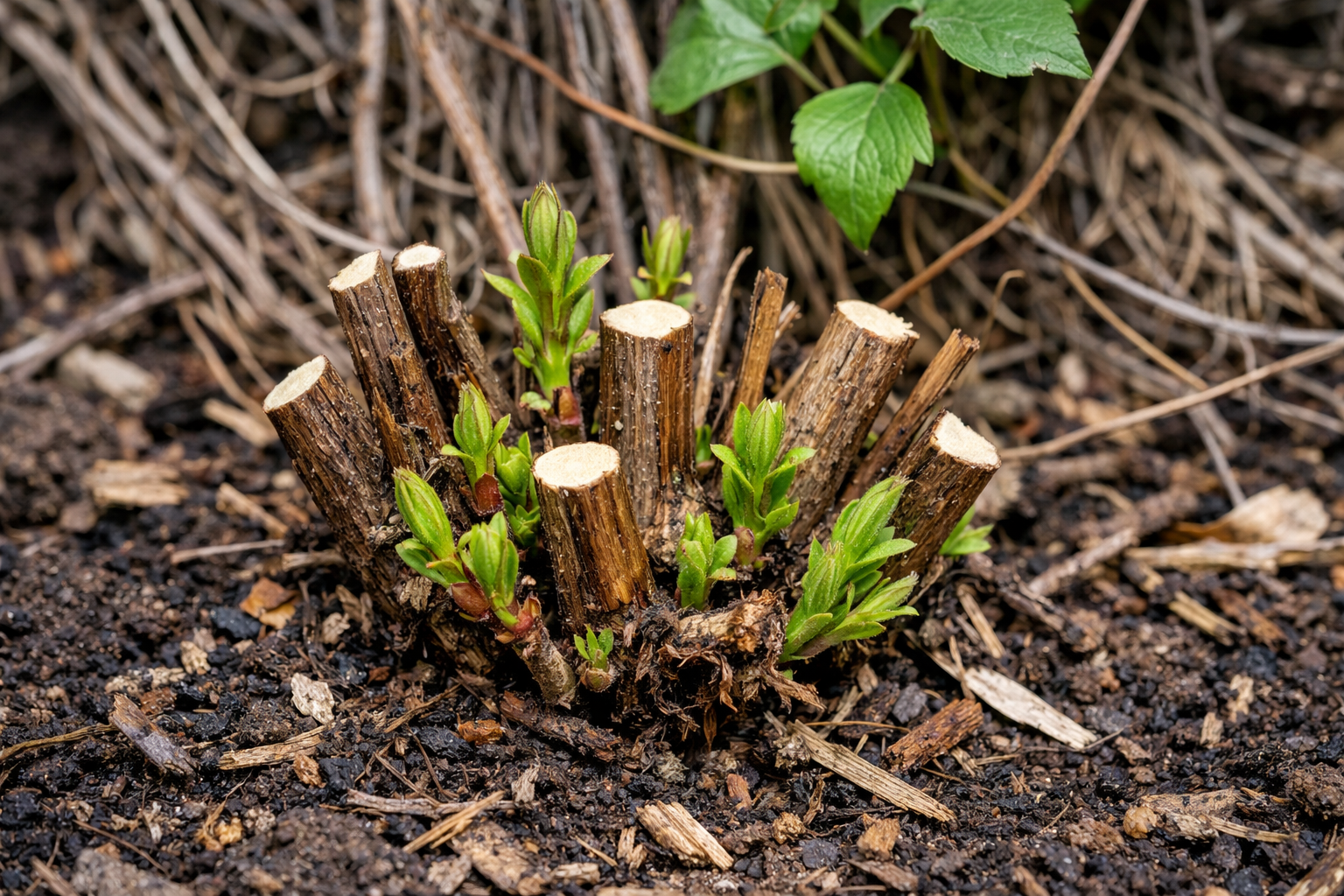 Usunięcie starych i chorych pędów robi miejsce dla rozwoju silnych młodych pędów.
