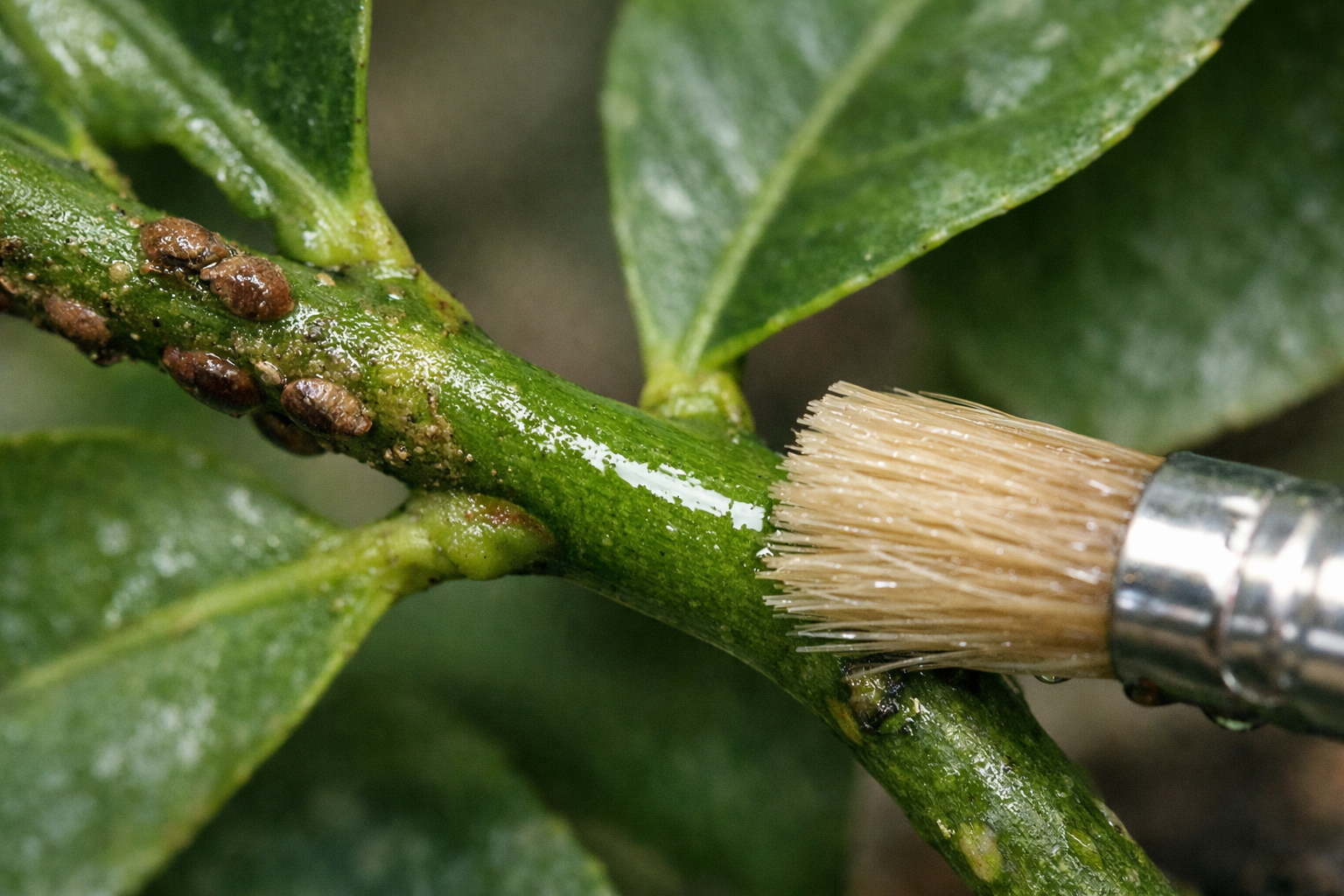 – Odizoluj zaatakowaną cytrynę od innych roślin. – Przygotuj roztwór mocnego alkoholu lub wódki i miękką szczotkę. – Delikatnie przetrzyj każdą gałąź, zwracając uwagę na miejsca, w których przyczepione są liście. – Użyj starej szczoteczki do zębów, aby fizycznie zeskrobać muszle owady.