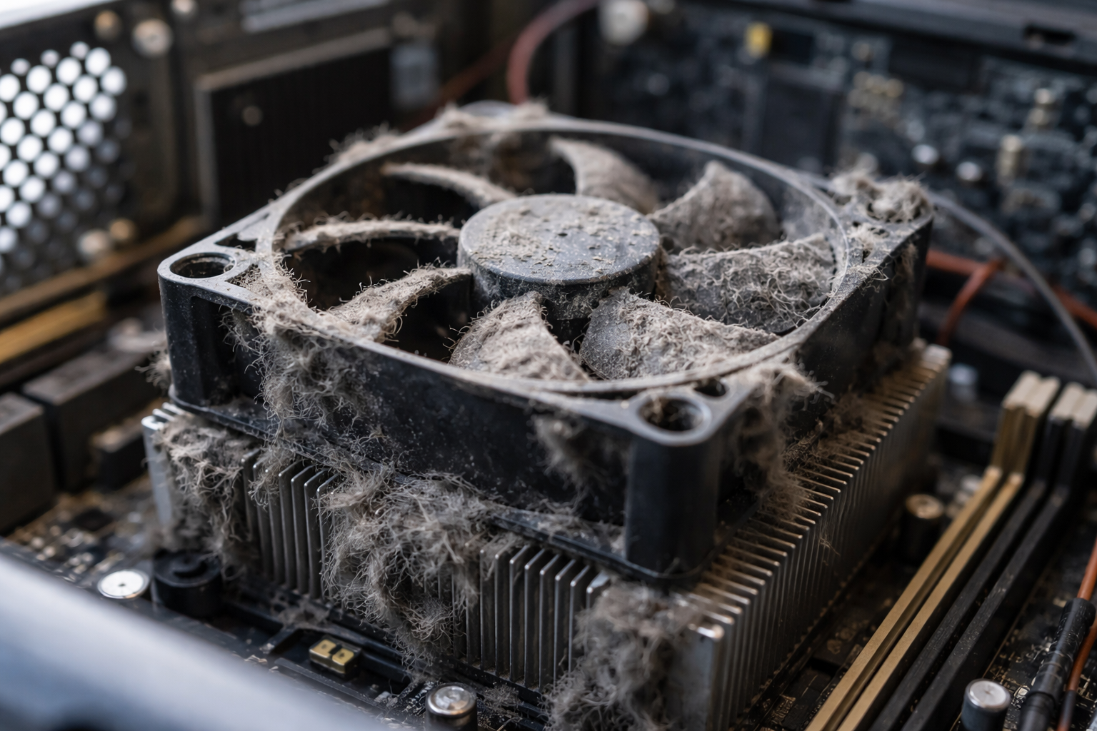 Drobne cząsteczki skóry, tekstyliów i minerałów są doskonałymi akumulatorami. elektryczność statyczna. Włączanie mikroukładyWarstwa ta blokuje odprowadzanie ciepła ze środka układu scalonego procesor и karty graficzne. Z powodu naruszenia reżimu temperaturowego sprzęt zaczyna zamarzać, a z czasem jego kluczowe komponenty po prostu się przepalają.