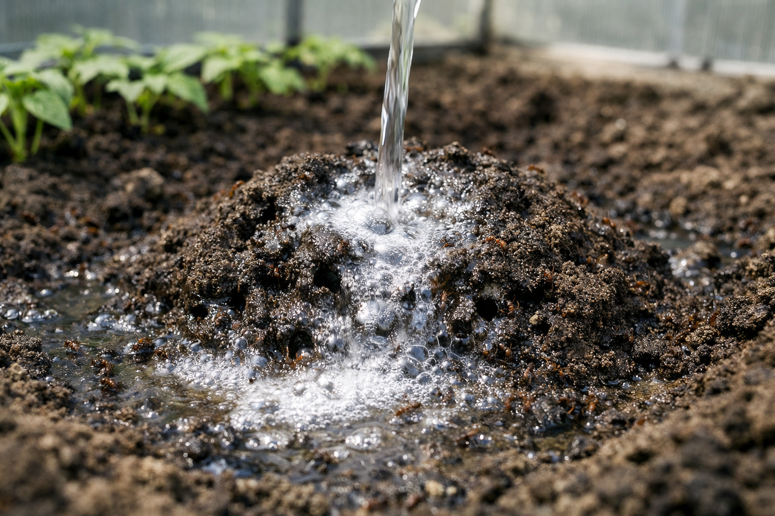 „Nigdy nie wylewaj stromej wrzącej wody na mrowisko bezpośrednio pod krzakami pomidorów, ponieważ spowoduje to natychmiastowe ugotowanie korzeni roślin i zabicie sadzonek”.