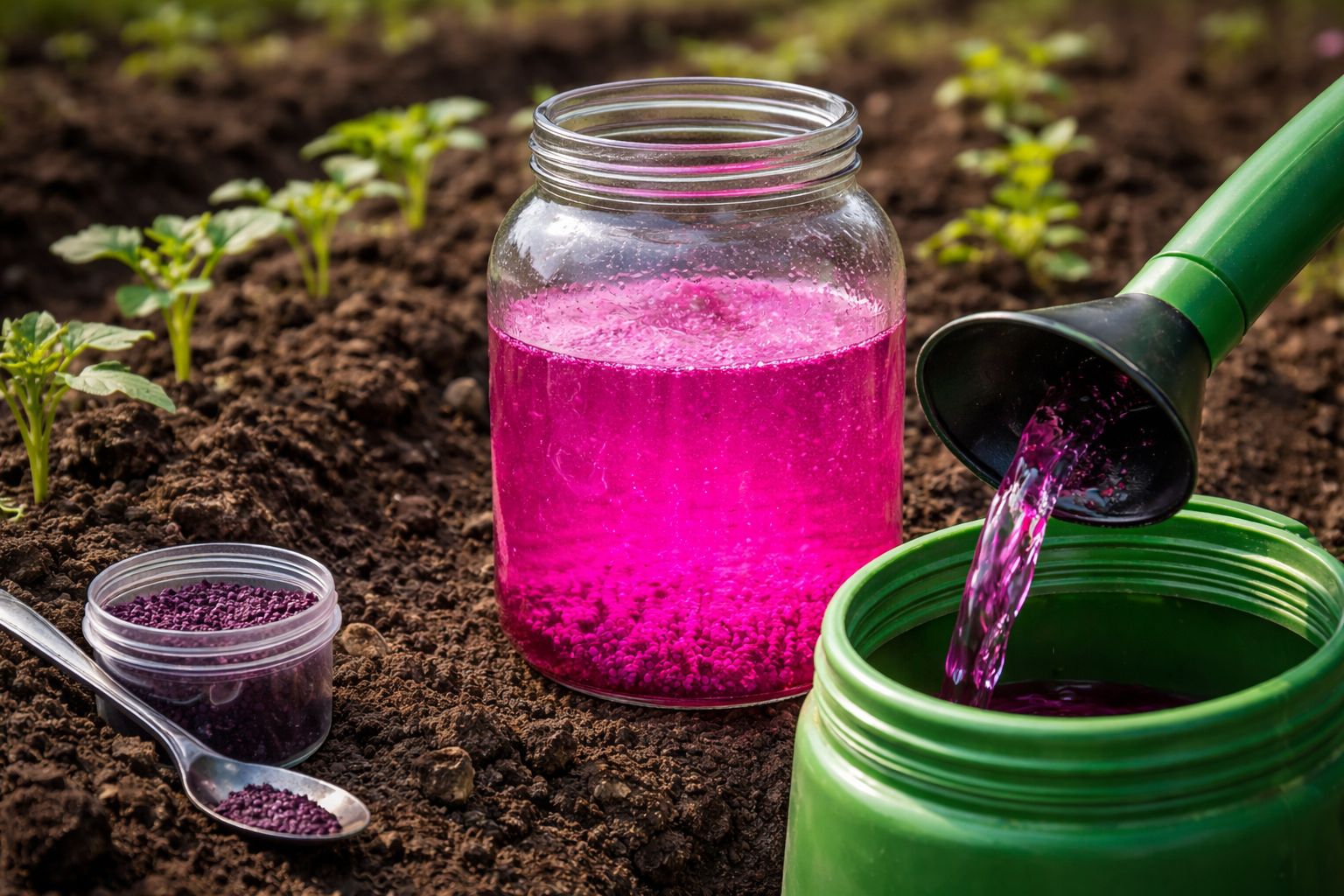 Główny sekret bezpieczeństwa: zawsze przygotuj skoncentrowany roztwór macierzysty w oddzielnym szklanym słoiku, poczekaj, aż każde ziarno całkowicie się rozpuści, a dopiero potem dodaj je do wody do nawadniania.