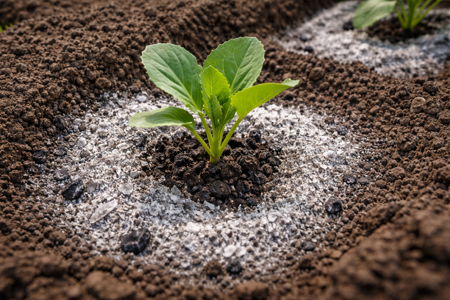 Grubo pokruszone skorupki jaj rozrzucone wokół łodygi tworzą fizyczną barierę nie do pokonania dla szkodników o miękkich ciałach.