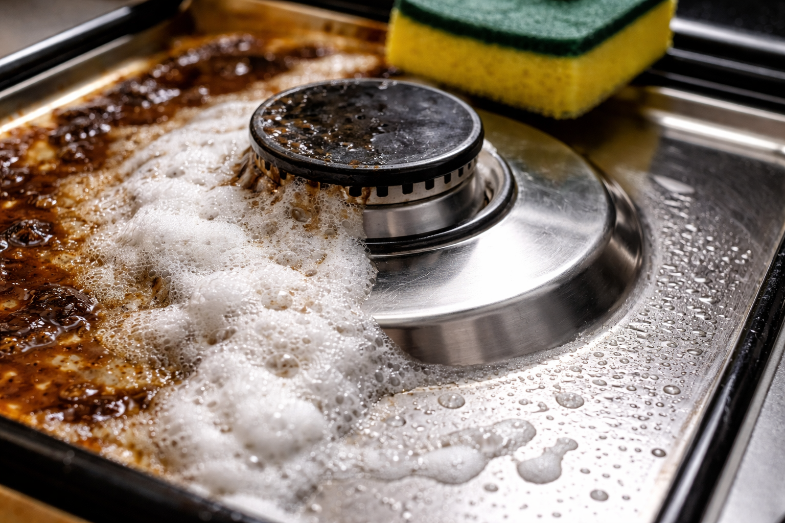 Usuń gęstą sadzę z blach do pieczenia i ścianek piekarnika za pomocą gęstej pasty.
