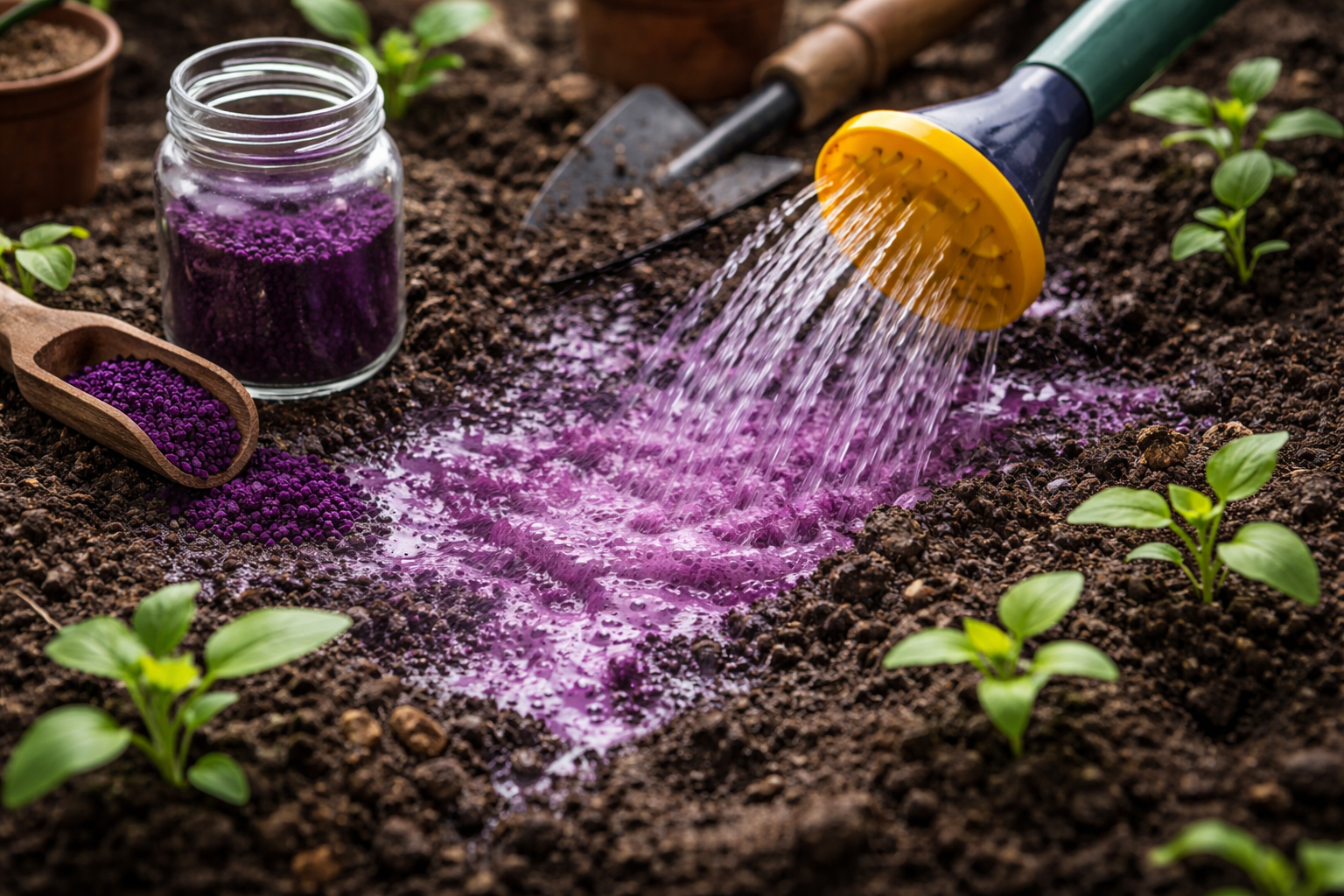Sekretny niuans z osobistej praktyki: nigdy nie rozpuszczaj kryształów bezpośrednio w konewce ogrodowej. Najpierw należy przygotować skoncentrowany roztwór macierzysty o bogatym ciemnym kolorze w małym szklanym słoiku, dokładnie wymieszać wszystkie ziarna, a następnie kropla po kropli dodawać go do wiadra z wodą do nawadniania, aby upewnić się, że delikatne korzenie roślin nie zostaną spalone.