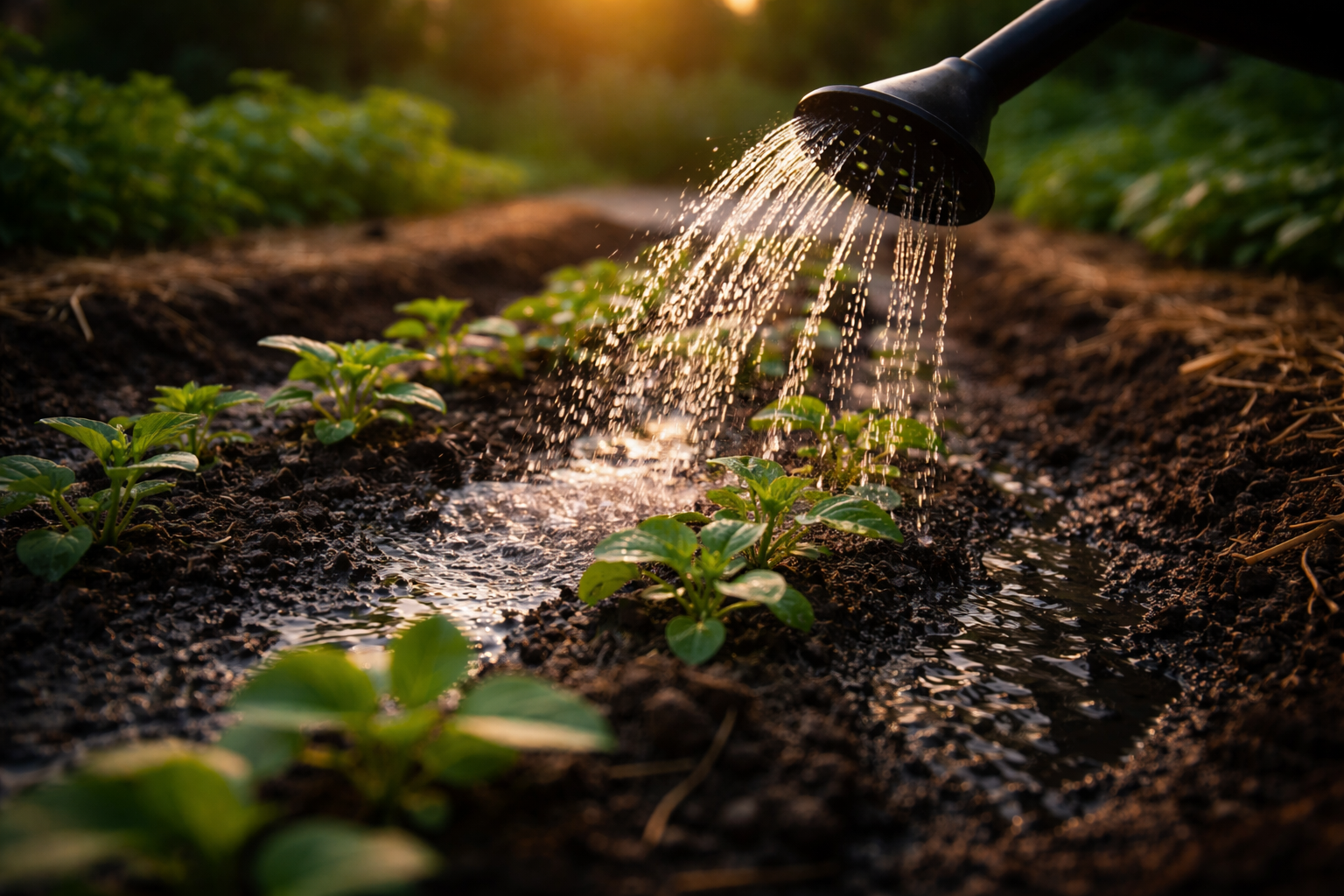 Nigdy nie używaj lodowatej wody ze studni o zmierzchu. Nagła zmiana temperatury powoduje silny stres u młodych sadzonek, który całkowicie zatrzymuje ich wzrost na kilka dni.