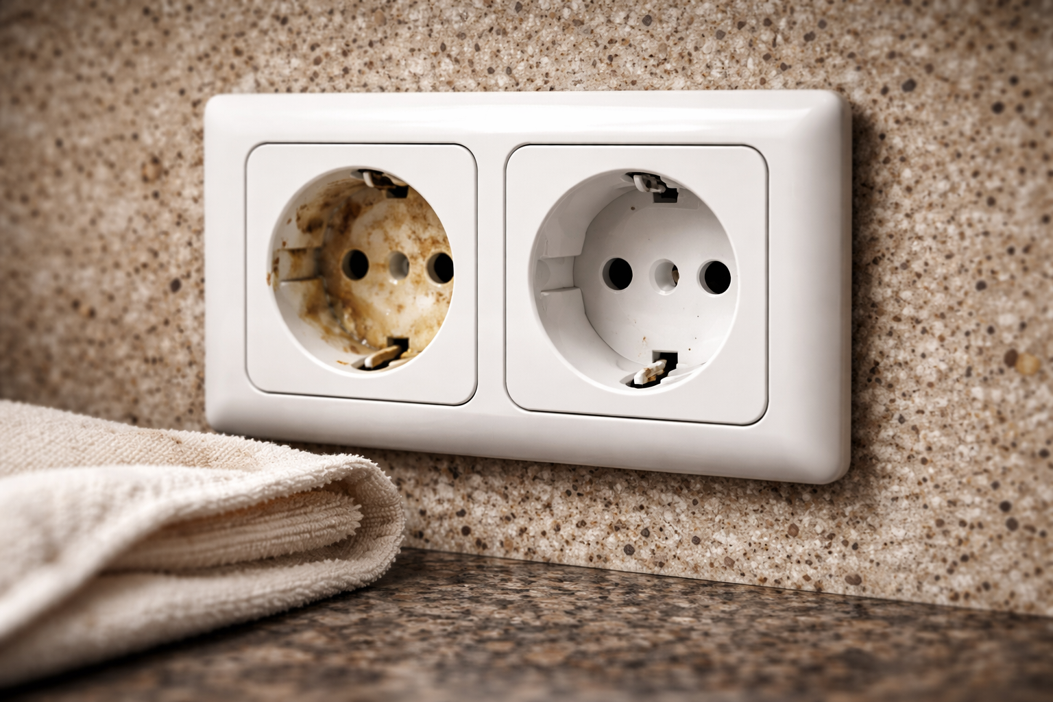 Gdy wtyczka urządzenia o dużej mocy jest włożona do brudnego gniazdka, słaby kontakt powoduje iskrzenie. Powoduje to wzrost temperatury, stopienie plastiku i wielokrotnie zwiększa ryzyko uszkodzenia mienia.